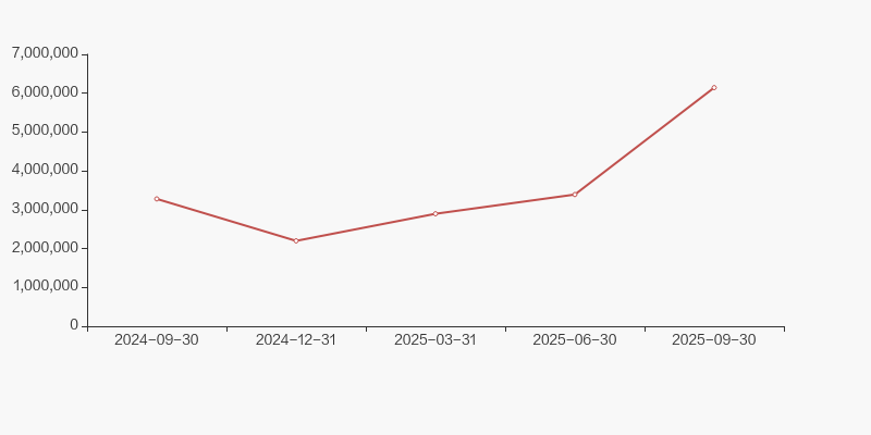 截至2025年9月30日,公司最新总股本为3.48亿股,其中流通股本为2.11亿股。户均持有流通股数量由上期的1.27万股上升至1.39万股,户均流通市值35.75万元。