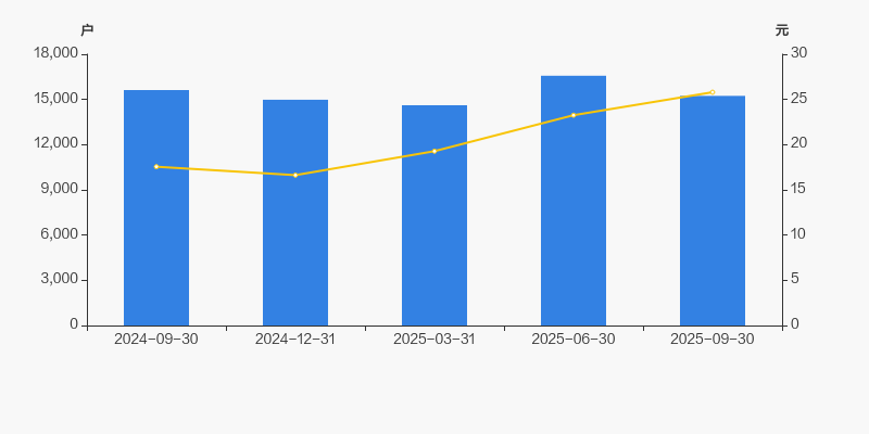 2024年9月30日至今,公司股东户数有所下降,区间跌幅为2.47%。2024年9月30日至2025年9月30日区间股价上涨46.89%。