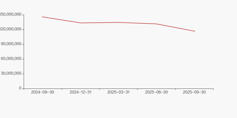 截至2025年9月30日,公司最新流通股本为12.12亿股。户均持有流通股数量由上期的1.32万股下降至1.11万股,户均流通市值273.69万元。