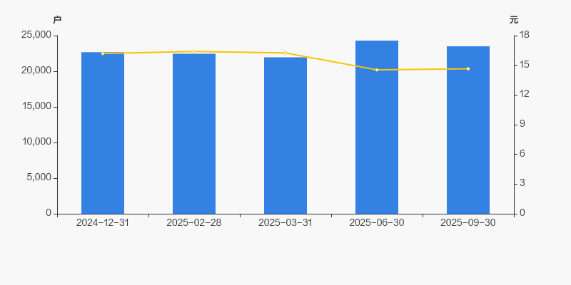2024年12月31日至今,公司股东户数有所增长,区间涨幅为3.65%。2024年12月31日至2025年9月30日区间股价下降9.51%。