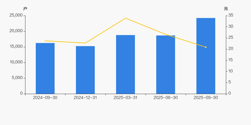 2024年9月30日至今,公司股东户数显著增长,区间涨幅为49.31%。2024年9月30日至2025年9月30日区间股价下降12.03%。