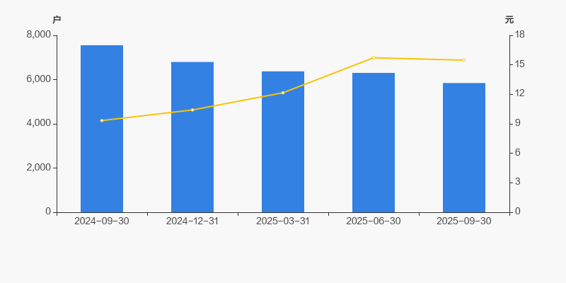 2024年9月30日至今,公司股东户数显著下降,区间跌幅为22.62%。2024年9月30日至2025年9月30日区间股价上涨65.89%。