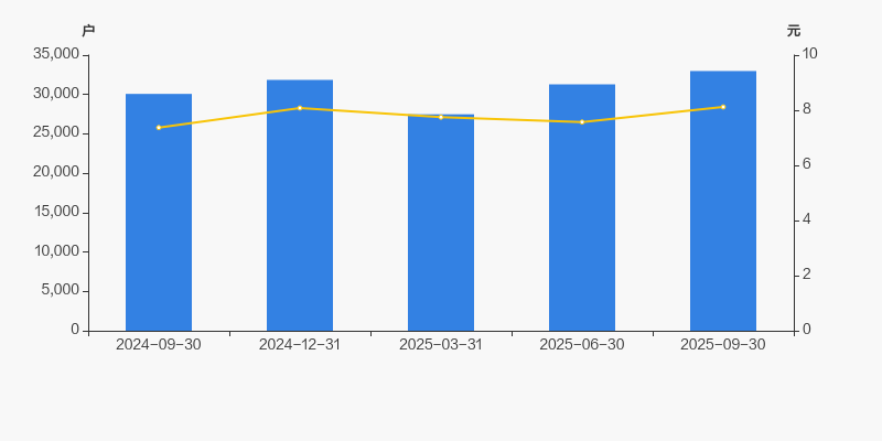 2024年9月30日至今,公司股东户数有所增长,区间涨幅为9.65%。2024年9月30日至2025年9月30日区间股价上涨10.12%。
