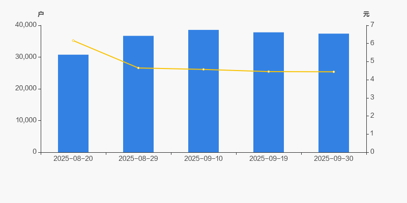 2025年8月20日至今,公司股东户数显著增长,区间涨幅为21.57%。2025年8月20日至2025年9月30日区间股价下降27.92%。