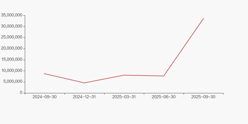 自2024年12月31日以来,公司股东户数连续3期上涨,截至目前增幅为133.30%。2024年12月31日至2025年9月30日区间股价上涨65.48%。