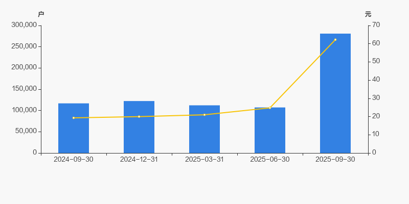 2024年9月30日至今,公司股东户数成倍增长,区间涨幅达140.44%。2024年9月30日至2025年9月30日区间股价上涨222.33%。