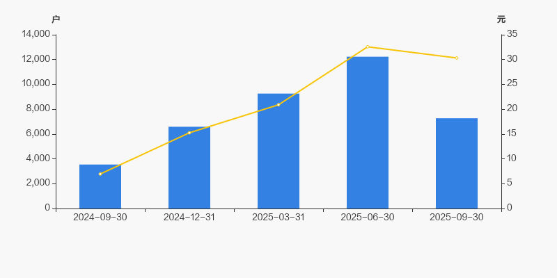 截至2025年9月30日,公司最新总股本为1.05亿股,其中流通股本为6776.23万股。户均持有流通股数量由上期的5541股上升至9320股,户均流通市值28.26万元。