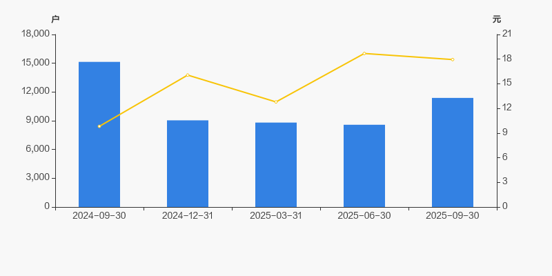 截至2025年9月30日,公司最新总股本为1.47亿股,其中流通股本为1.18亿股。户均持有流通股数量由上期的1.38万股下降至1.04万股,户均流通市值18.64万元。