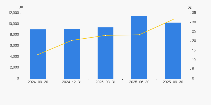 2024年9月30日至今,公司股东户数显著增长,区间涨幅为13.64%。2024年9月30日至2025年9月30日区间股价上涨144.67%。