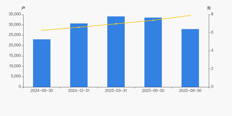 2024年9月30日至今,公司股东户数显著增长,区间涨幅为21.51%。2024年9月30日至2025年9月30日区间股价上涨26.33%。