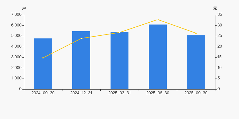 2024年9月30日至今,公司股东户数有所增长,区间涨幅为6.40%。2024年9月30日至2025年9月30日区间股价上涨78.77%。