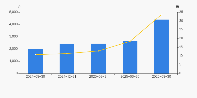 2024年9月30日至今,公司股东户数成倍增长,区间涨幅达121.93%。2024年9月30日至2025年9月30日区间股价上涨212.60%。