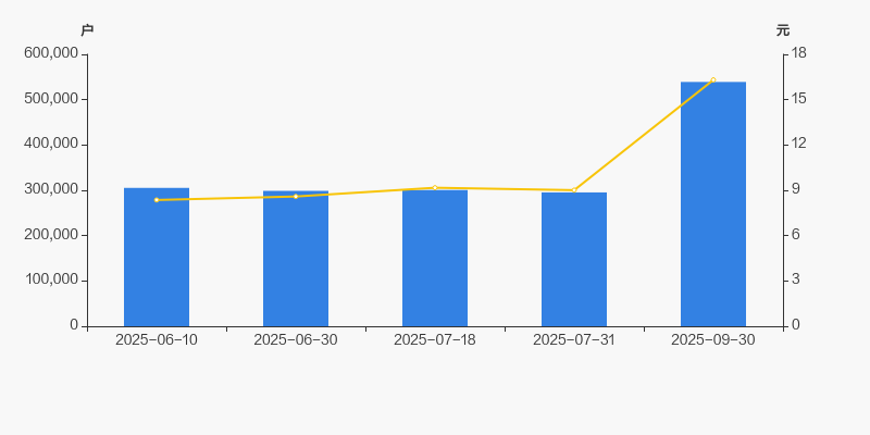 2025年6月10日至今,公司股东户数显著大幅增长,区间涨幅达76.56%。2025年6月10日至2025年9月30日区间股价上涨95.10%。