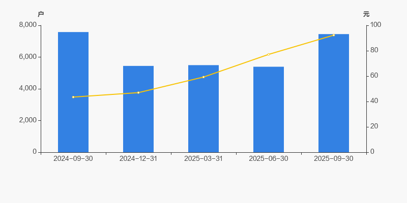 2024年9月30日至今,公司股东户数有所下降,区间跌幅为1.70%。2024年9月30日至2025年9月30日区间股价上涨112.25%。