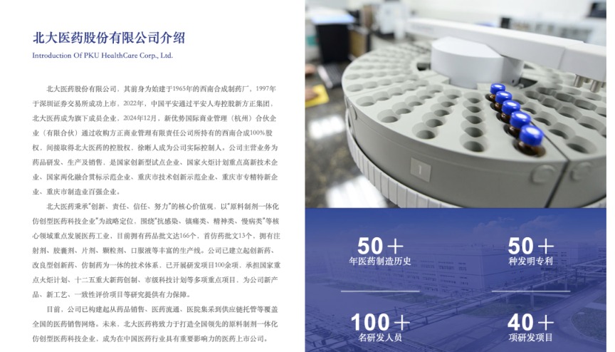 2024年12月,新优势国际商业管理(杭州)合伙企业(有限合伙)通过收购方正商业管理有限责任公司所持有的西南合成医药集团100%股权,间接取得北大医药的控股权,徐晰人成为公司实际控制人。