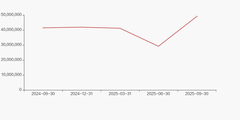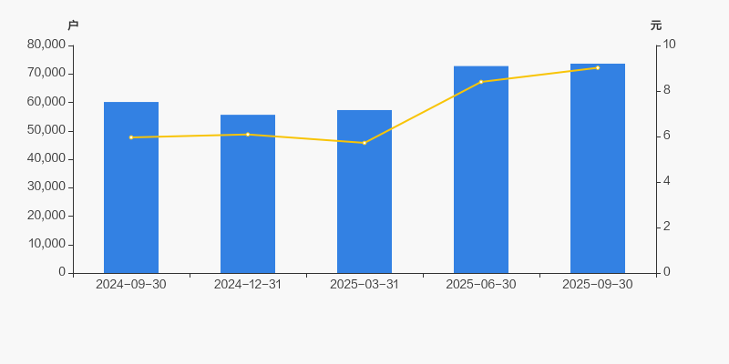截至2025年9月30日,公司最新总股本为12.8亿股,其中流通股本为9.41亿股。户均持有流通股数量由上期的1.29万股下降至1.28万股,户均流通市值11.53万元。
