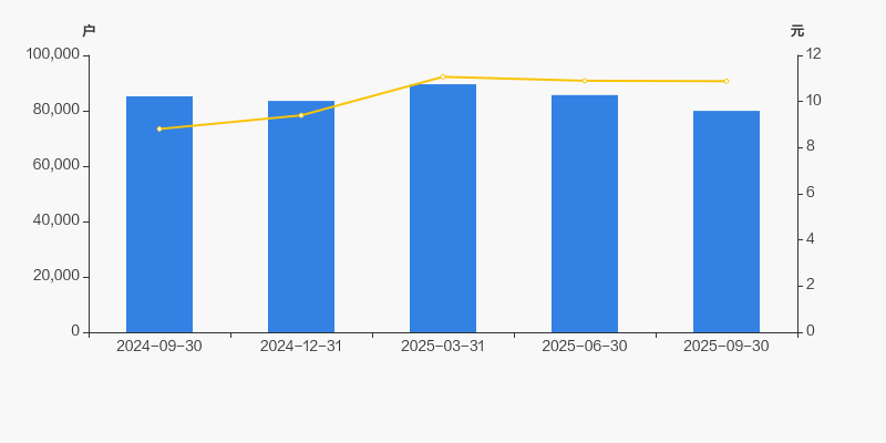 截至2025年9月30日,公司最新总股本为11.39亿股,其中流通股本为9.06亿股。户均持有流通股数量由上期的1.06万股上升至1.13万股,户均流通市值12.33万元。