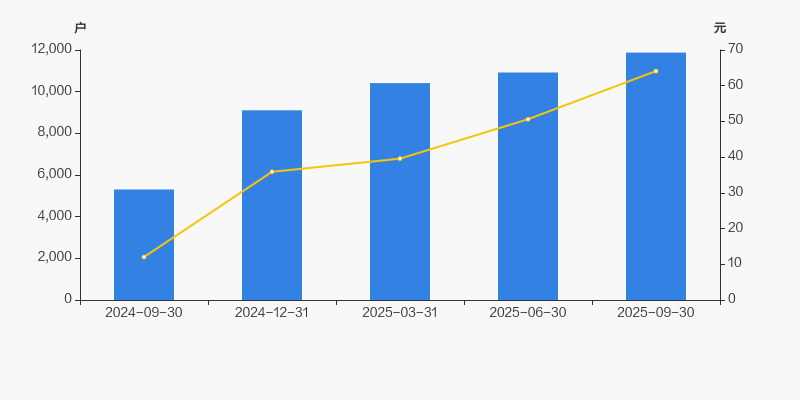截至2025年9月30日,公司最新总股本为1.57亿股,其中流通股本为1.3亿股。户均持有流通股数量由上期的1.17万股下降至1.09万股,户均流通市值70.19万元。