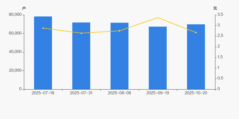 2025年7月18日至今,公司股东户数显著下降,区间跌幅为10.77%。2025年7月18日至2025年10月20日区间股价下降7.29%。