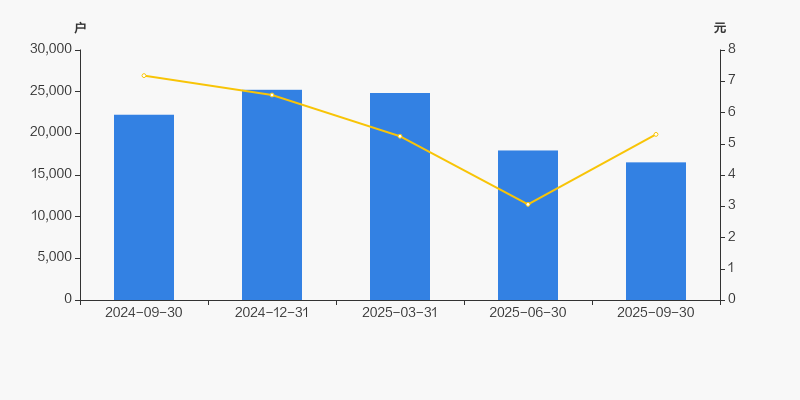 截至2025年9月30日,公司最新总股本为2.75亿股,其中流通股本为2.65亿股。户均持有流通股数量由上期的1.48万股上升至1.6万股,户均流通市值8.5万元。