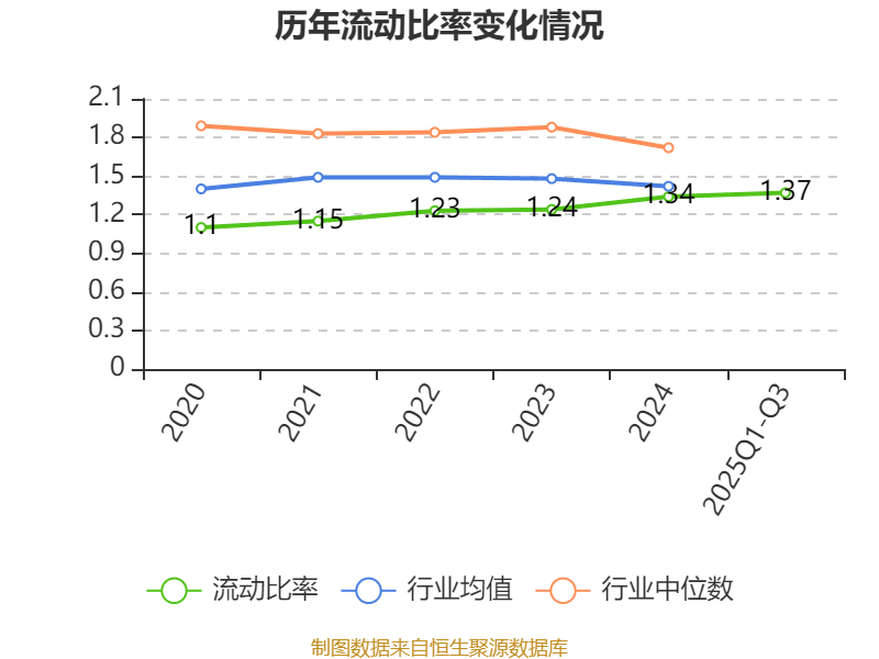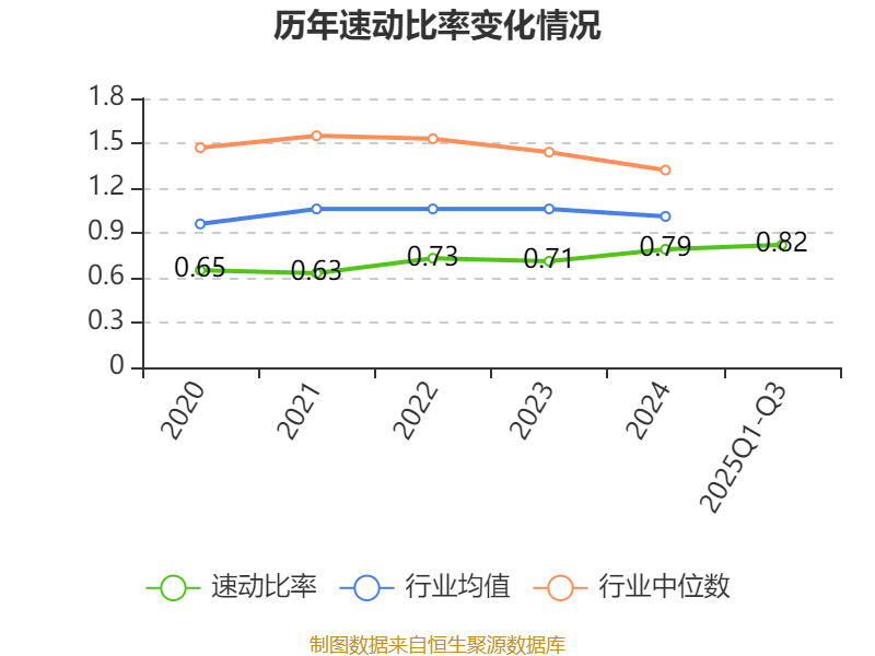 2025年前三季度,公司流动比率为1.37,速动比率为0.82。