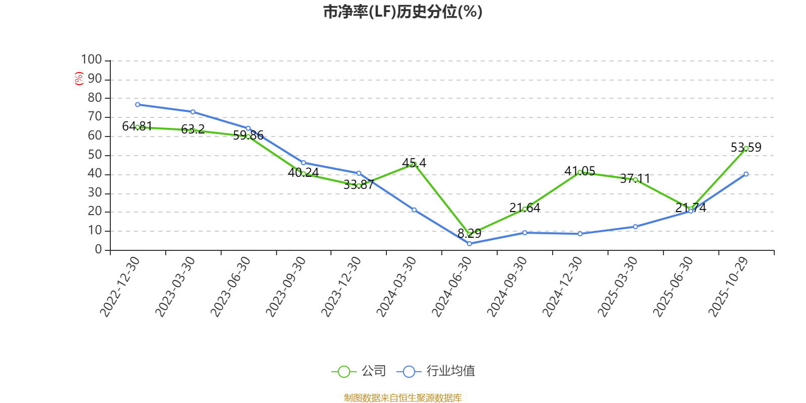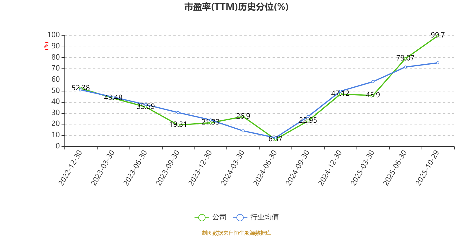 市盈率、市净率为负时,不显示当期分位数,会导致折线图中断。