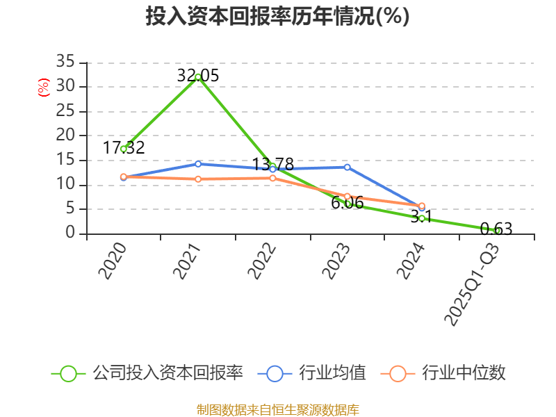 盈利能力方面, 2025年前三季度公司加权平均净资产收益率为0.87%,同比下降2.46个百分点。公司2025年前三季度投入资本回报率为0.63%,较上年同期下降2.21个百分点。