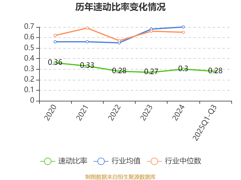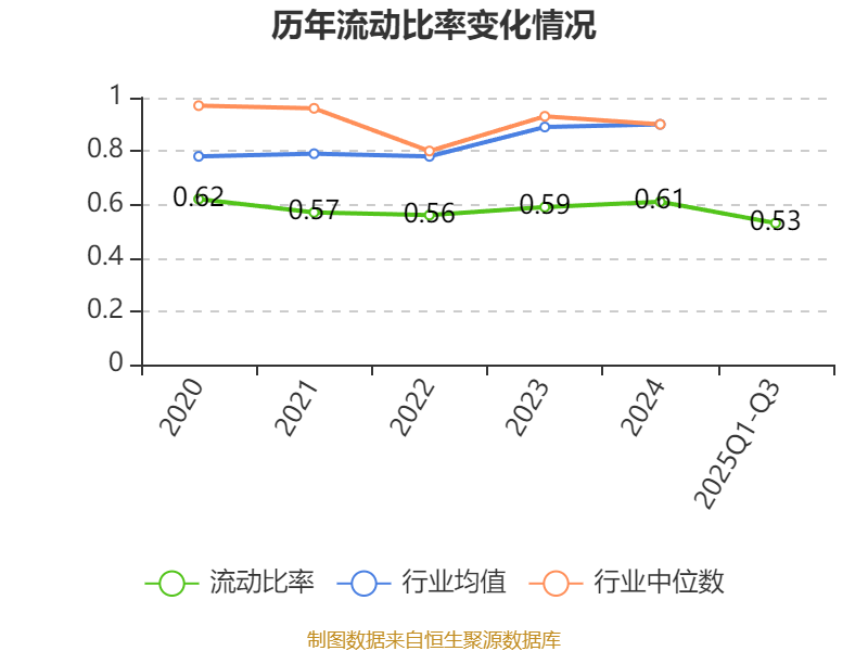 2025年前三季度,公司流动比率为0.53,速动比率为0.28。