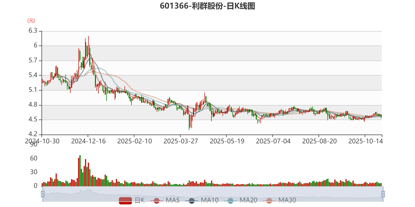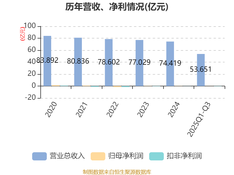 中证智能财讯利群股份(601366)10月30日披露2025年第三季度报告。前三季度公司实现营业总收入53.65亿元,同比下降4.83%;归母净利润1373.55万元,同比下降46.79%;扣非净利润亏损4008.54万元,上年同期亏损4390.28万元;经营活动产生的现金流量净额为9.33亿元,同比下降1.28%;报告期内,利群股份基本每股收益为0.015元,加权平均净资产收益率为0.32%。