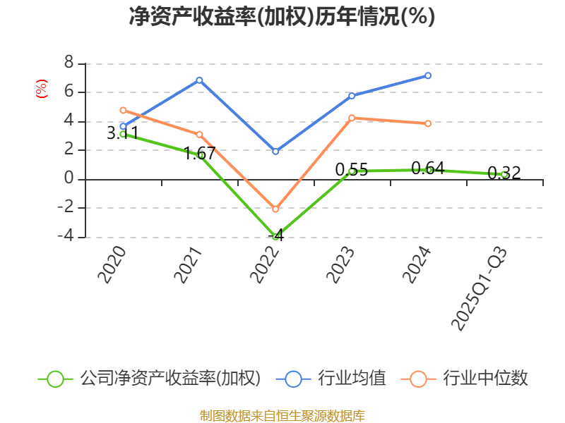 盈利能力方面, 2025年前三季度公司加权平均净资产收益率为0.32%,同比下降0.29个百分点。公司2025年前三季度投入资本回报率为0.38%,较上年同期下降0.41个百分点。