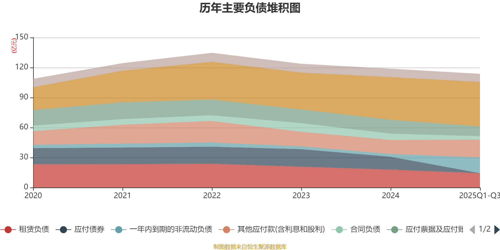 负债重大变化方面,截至2025年三季度末,公司一年内到期的非流动负债较上年末增加456.11%,占公司总资产比重上升8.48个百分点;应付债券较上年末减少100%,占公司总资产比重下降7.93个百分点;其他应付款(含利息和股利)较上年末增加25.69%,占公司总资产比重上升2.72个百分点;短期借款较上年末增加4.3%,占公司总资产比重上升2.4个百分点。