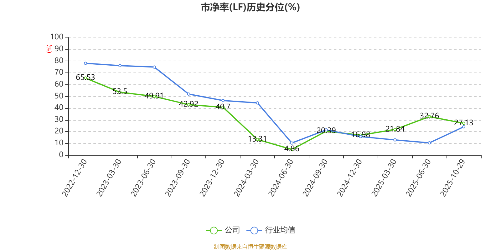 市盈率、市净率为负时,不显示当期分位数,会导致折线图中断。