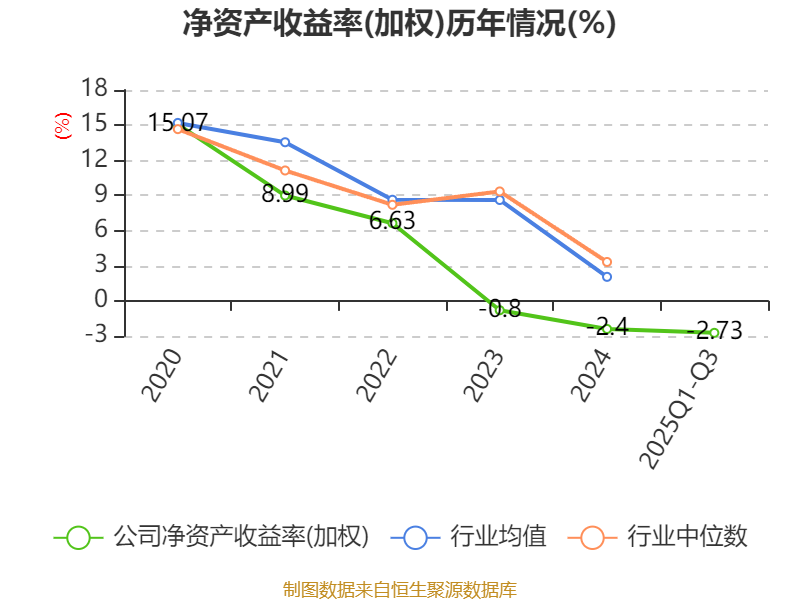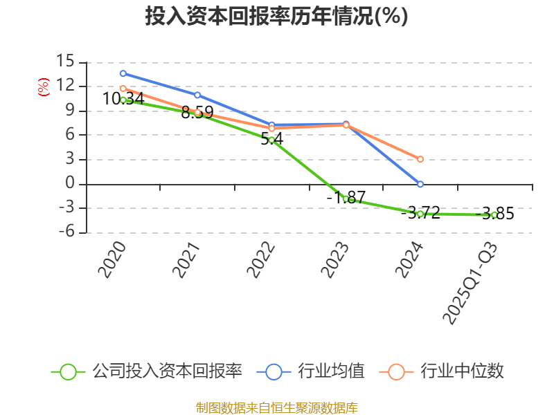 盈利能力方面, 2025年前三季度公司加权平均净资产收益率为-2.73%,同比下降2.24个百分点。公司2025年前三季度投入资本回报率为-3.85%,较上年同期下降2.33个百分点。