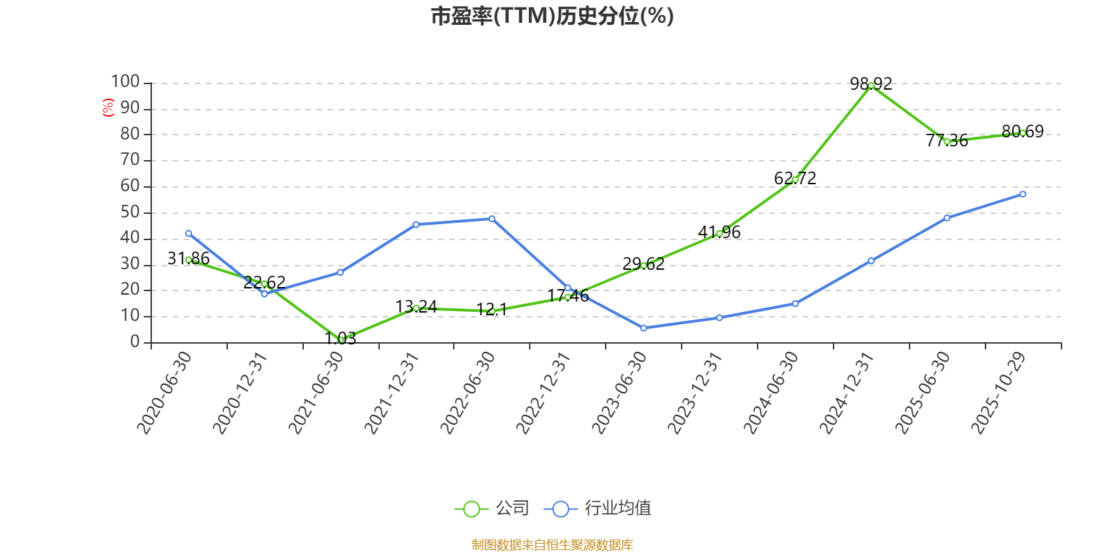 市盈率、市净率为负时,不显示当期分位数,会导致折线图中断。
