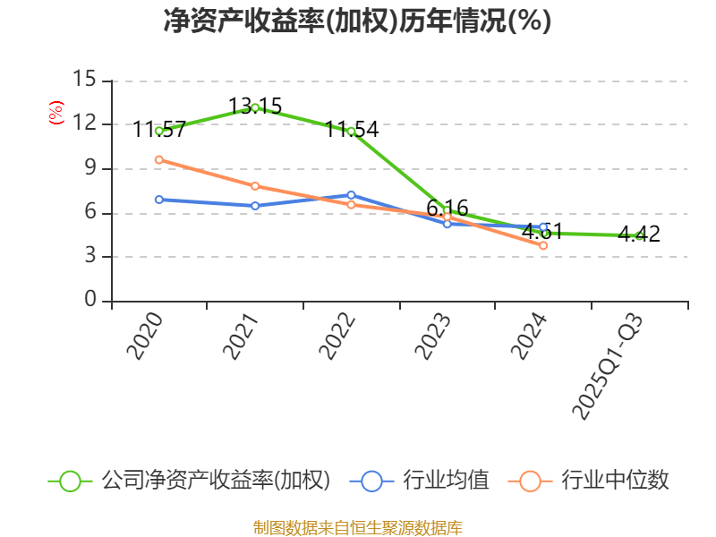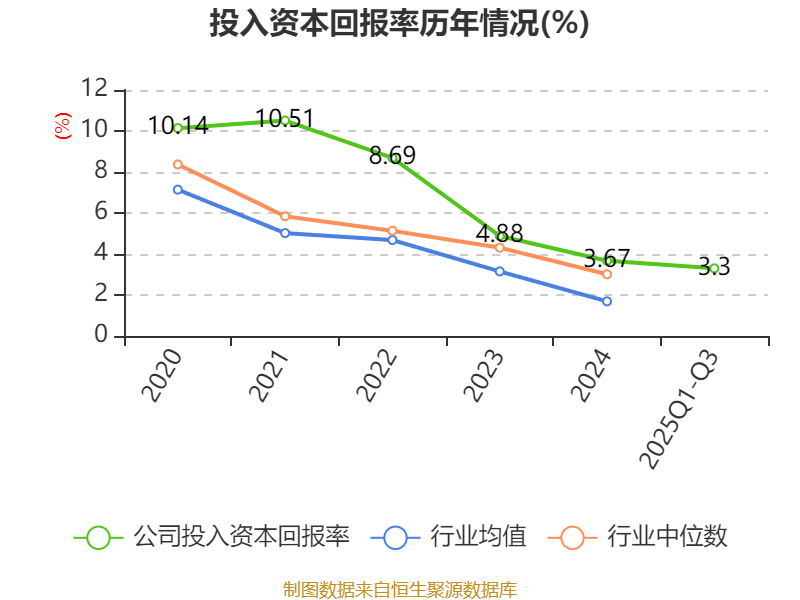 盈利能力方面, 2025年前三季度公司加权平均净资产收益率为4.42%,同比上升0.17个百分点。公司2025年前三季度投入资本回报率为3.3%,较上年同期上升0.09个百分点。