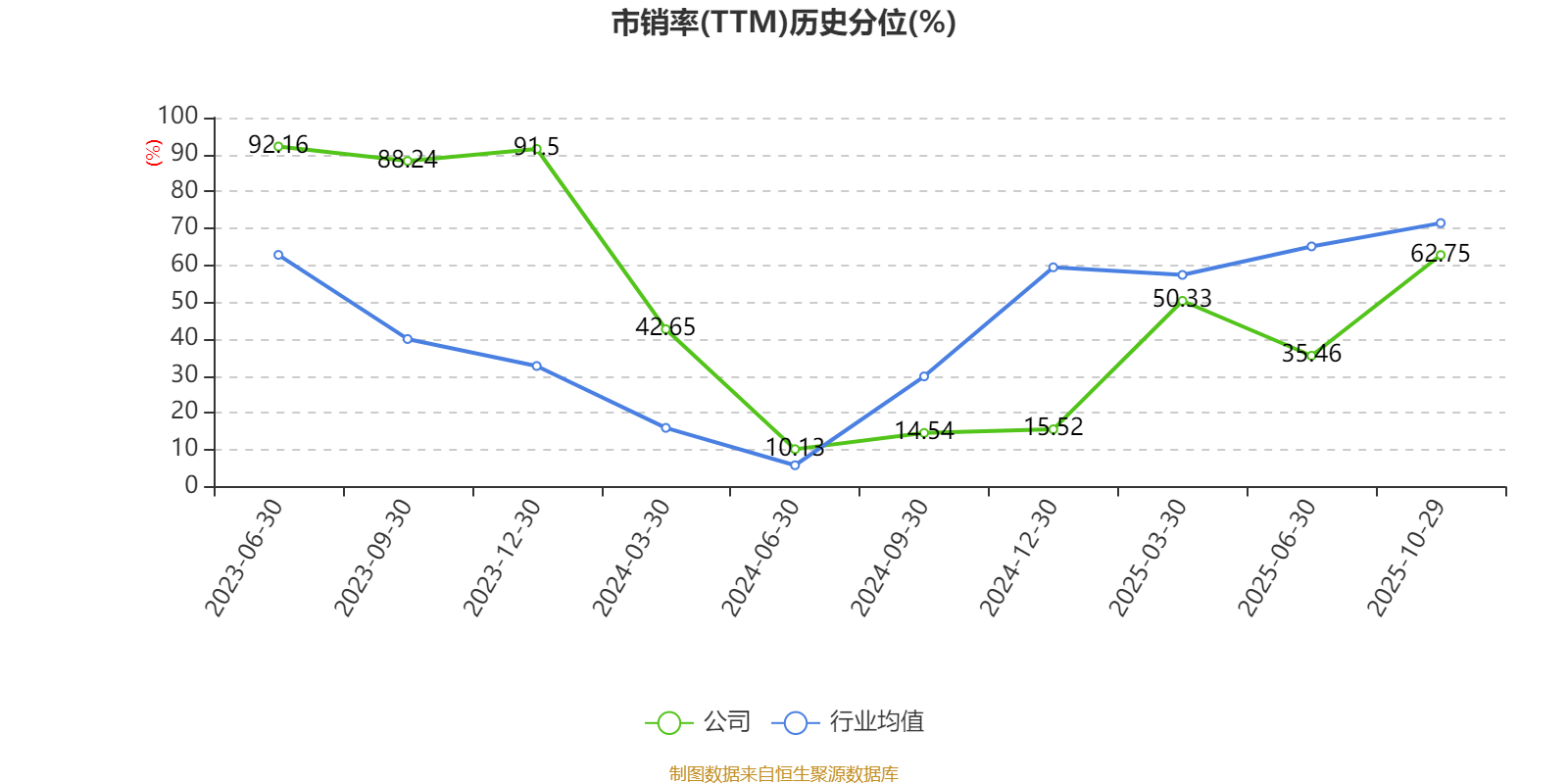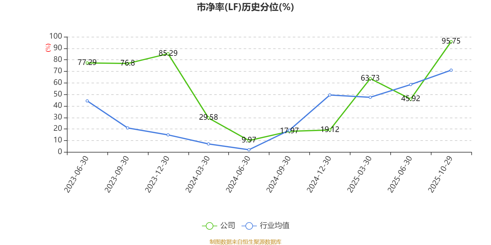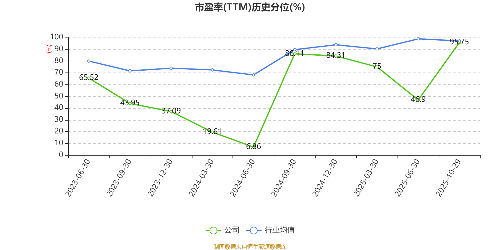 市盈率、市净率为负时,不显示当期分位数,会导致折线图中断。