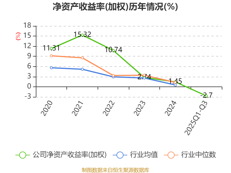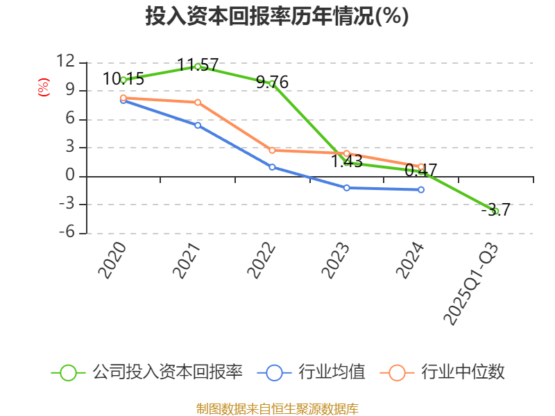 盈利能力方面, 2025年前三季度公司加权平均净资产收益率为-2.7%,同比下降0.19个百分点。公司2025年前三季度投入资本回报率为-3.7%,较上年同期上升0.28个百分点。