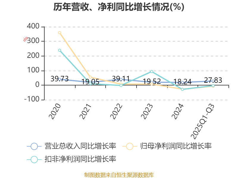 资产重大变化方面,截至2025年三季度末,公司货币资金较上年末减少14.02%,占公司总资产比重下降7.25个百分点;商誉较上年末增加110.07%,占公司总资产比重上升2.38个百分点;固定资产较上年末增加31.01%,占公司总资产比重上升1.61个百分点;应收票据及应收账款较上年末增加3.42%,占公司总资产比重上升1.25个百分点。