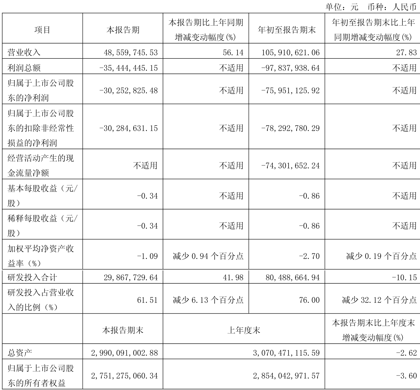 中证智能财讯索辰科技(688507)10月30日披露2025年第三季度报告。前三季度公司实现营业总收入1.06亿元,同比增长27.83%;归母净利润亏损7595.11万元,上年同期亏损7064.72万元;扣非净利润亏损7829.28万元,上年同期亏损7523.18万元;经营活动产生的现金流量净额为-7430.17万元,上年同期为-8711.71万元;报告期内,索辰科技基本每股收益为-0.86元,加权平均净资产收益率为-2.70%。