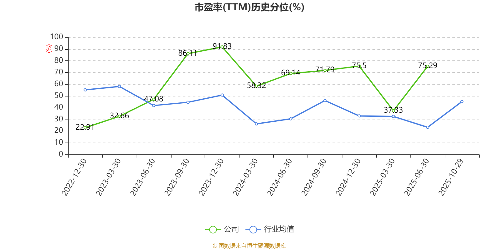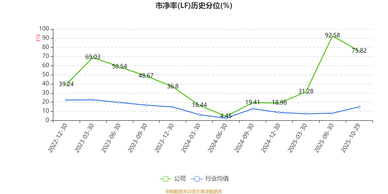 市盈率、市净率为负时,不显示当期分位数,会导致折线图中断。