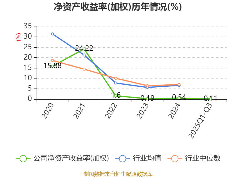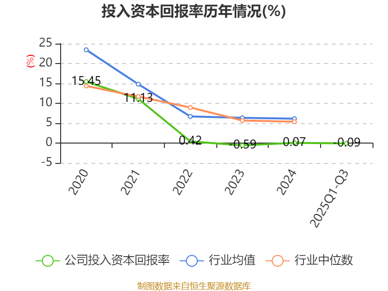 盈利能力方面, 2025年前三季度公司加权平均净资产收益率为0.11%,同比下降0.55个百分点。公司2025年前三季度投入资本回报率为-0.09%,较上年同期下降0.42个百分点。