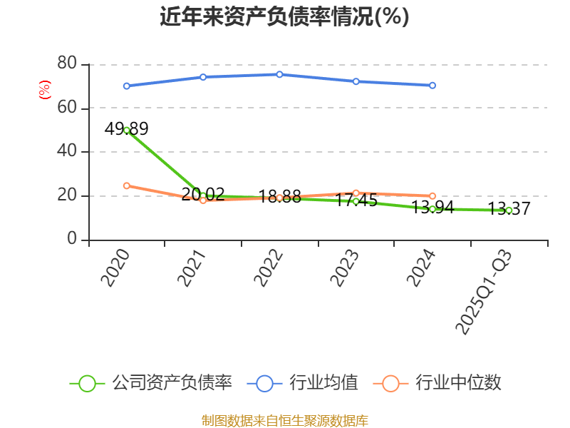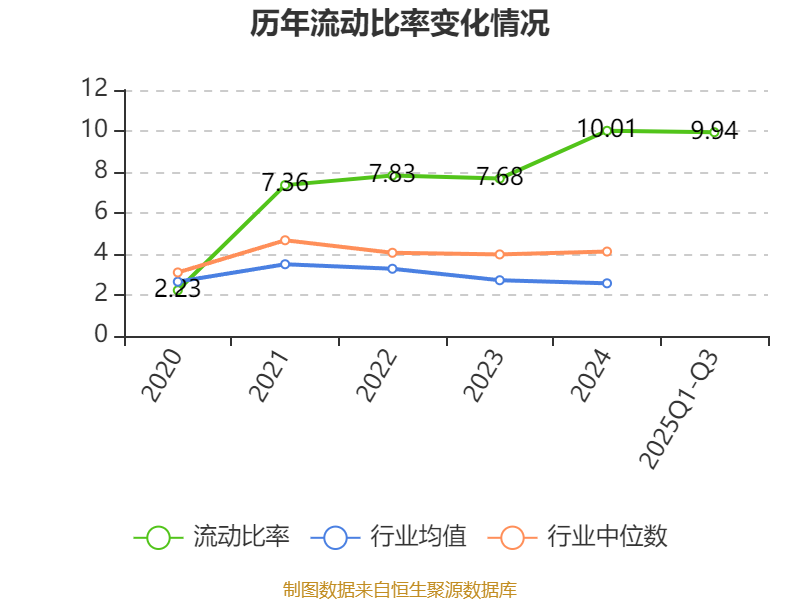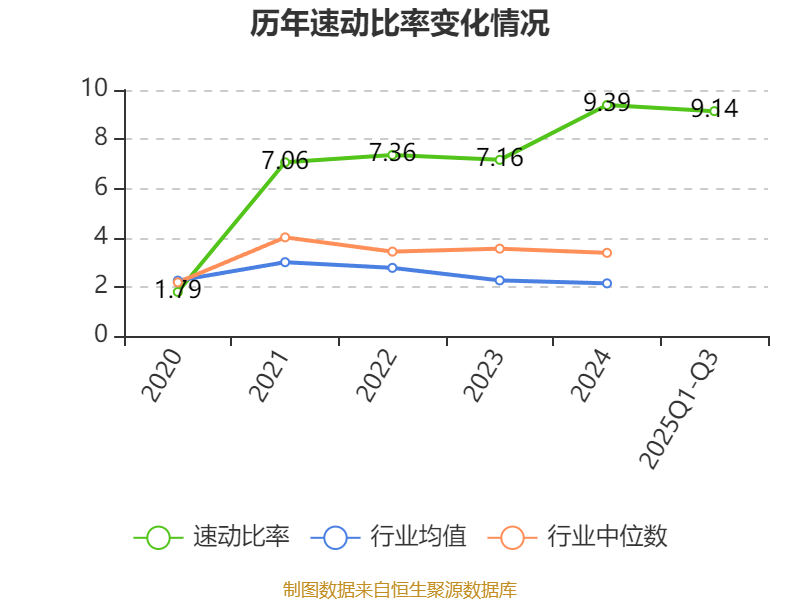 2025年前三季度,公司流动比率为9.94,速动比率为9.14。