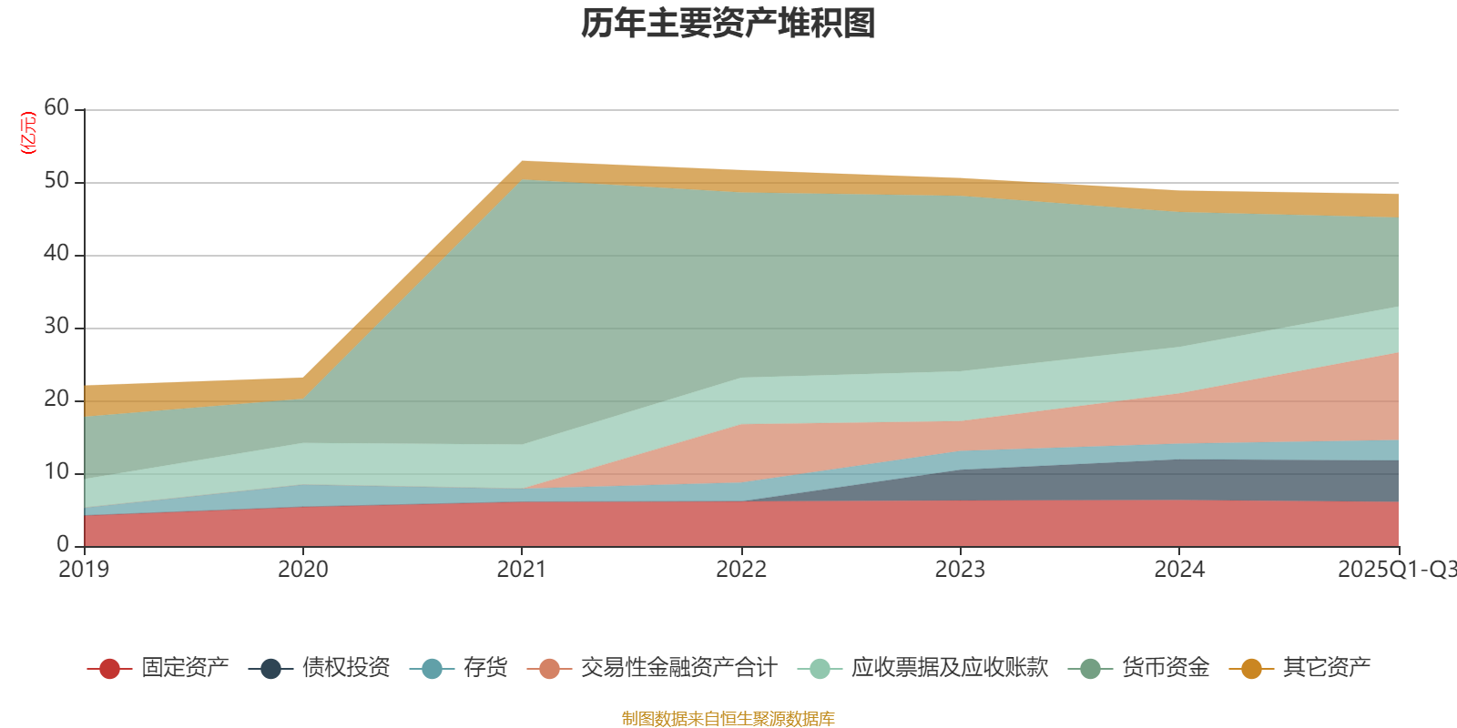 资产重大变化方面,截至2025年三季度末,公司货币资金较上年末减少33.93%,占公司总资产比重下降12.64个百分点;交易性金融资产合计较上年末增加74.31%,占公司总资产比重上升10.73个百分点;存货较上年末增加29.52%,占公司总资产比重上升1.36个百分点;固定资产较上年末减少4.29%,占公司总资产比重下降0.44个百分点。