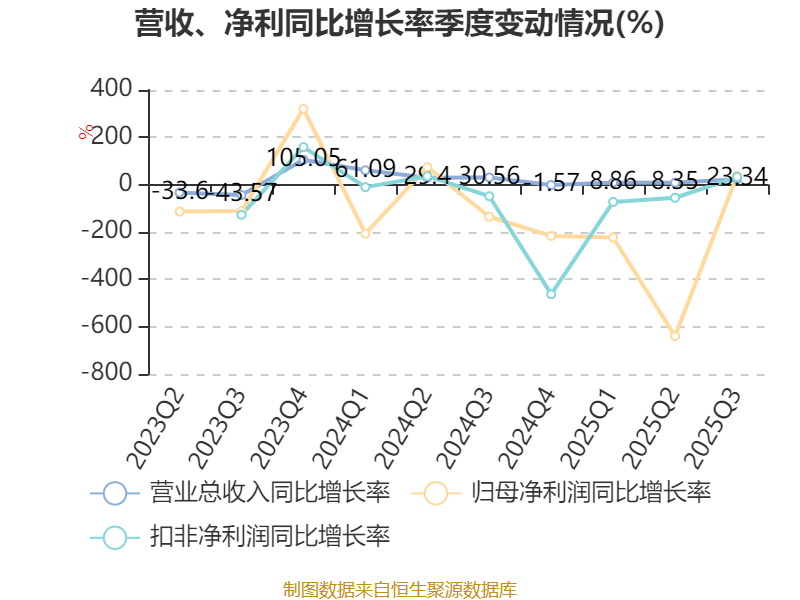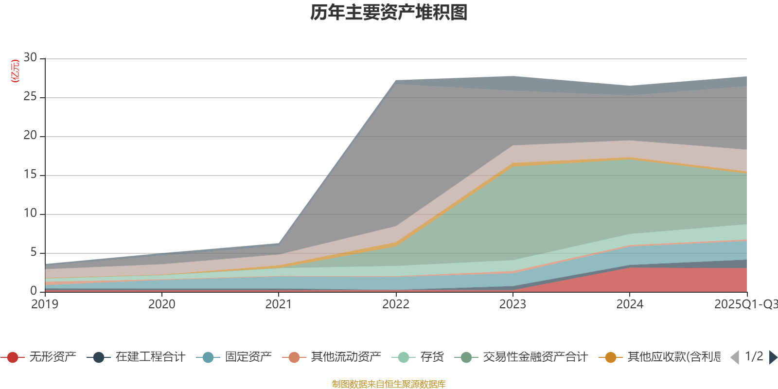 资产重大变化方面,截至2025年三季度末,公司交易性金融资产合计较上年末减少31.99%,占公司总资产比重下降12.65个百分点;货币资金较上年末增加40.89%,占公司总资产比重上升7.6个百分点;在建工程合计较上年末增加211.8%,占公司总资产比重上升2.62个百分点;应收票据及应收账款较上年末增加30.88%,占公司总资产比重上升2.04个百分点。