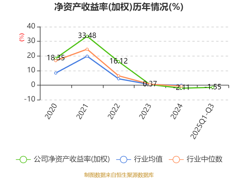 盈利能力方面, 2025年前三季度公司加权平均净资产收益率为-1.55%,同比下降0.63个百分点。公司2025年前三季度投入资本回报率为-1.9%,较上年同期下降0.34个百分点。