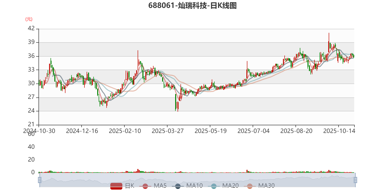 中证智能财讯灿瑞科技(688061)10月30日披露2025年第三季度报告。前三季度公司实现营业总收入4.74亿元,同比增长13.75%;归母净利润亏损3747.63万元,上年同期亏损2303.38万元;扣非净利润亏损5761.42万元,上年同期亏损4961.33万元;经营活动产生的现金流量净额为-7358.74万元,上年同期为-6616.83万元;报告期内,灿瑞科技基本每股收益为-0.33元,加权平均净资产收益率为-1.55%。