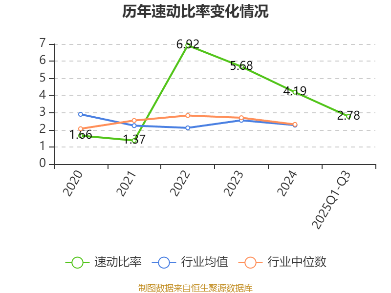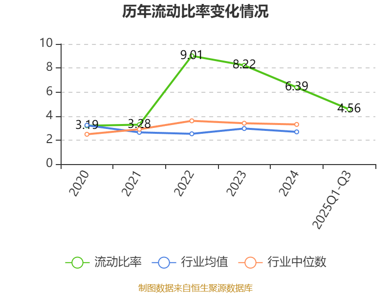 2025年前三季度,公司流动比率为4.56,速动比率为2.78。