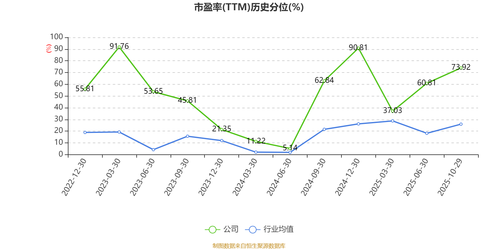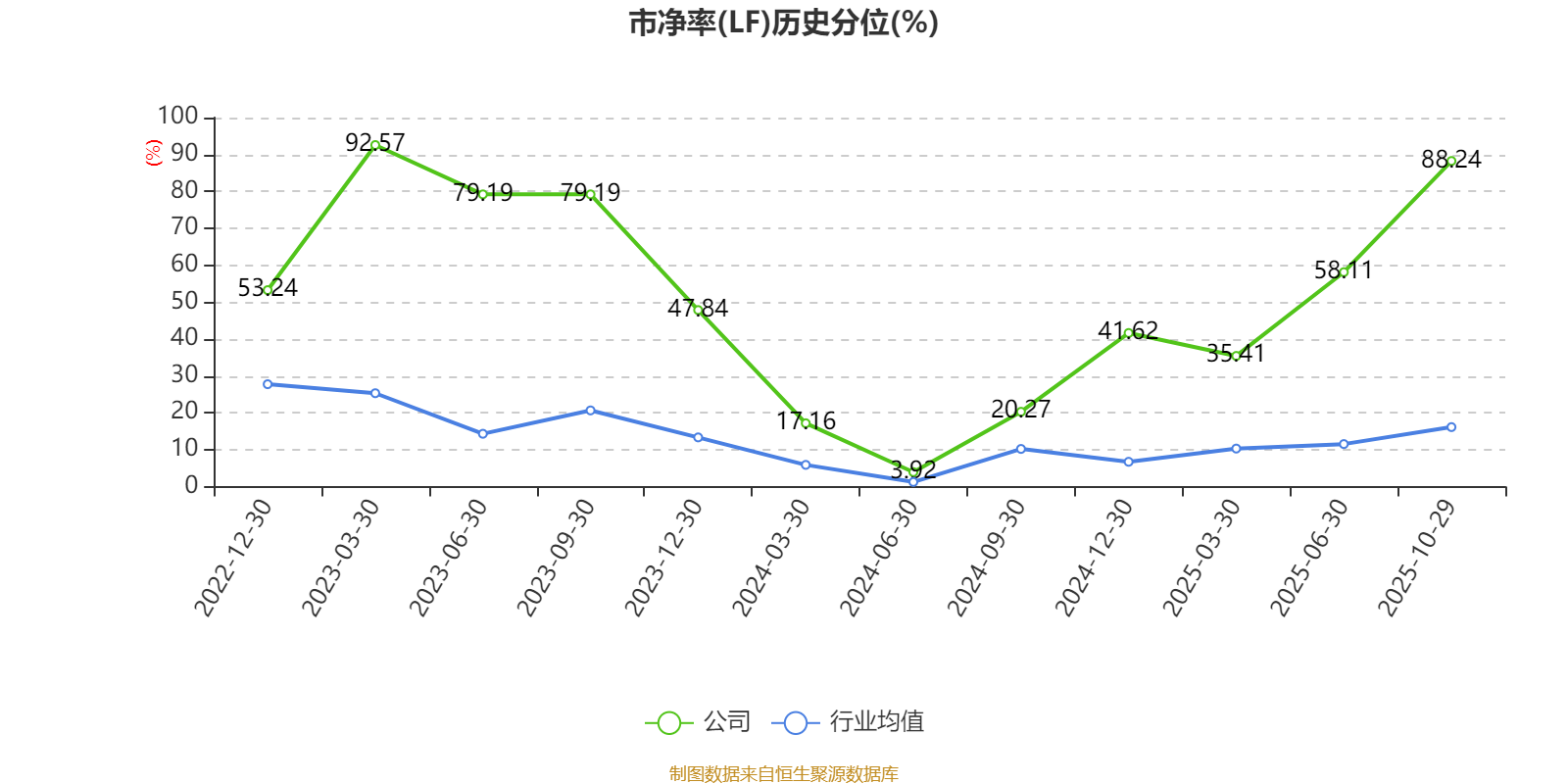 市盈率、市净率为负时,不显示当期分位数,会导致折线图中断。