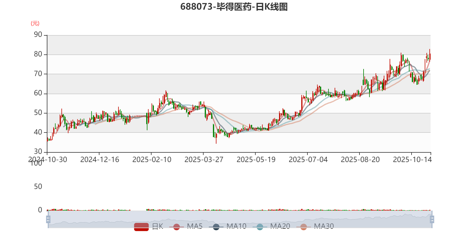 以10月29日收盘价计算,毕得医药目前市盈率(TTM)约为47.65倍,市净率(LF)约3.65倍,市销率(TTM)约5.75倍。