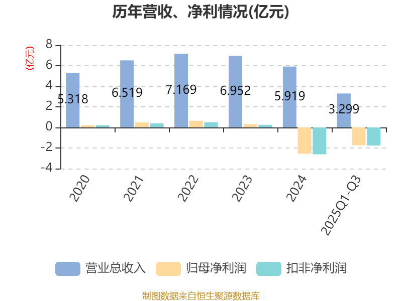 中证智能财讯嘉和美康(688246)10月30日披露2025年第三季度报告。前三季度公司实现营业总收入3.3亿元,同比下降30.67%;归母净利润亏损1.74亿元,上年同期亏损4125.95万元;扣非净利润亏损1.76亿元,上年同期亏损4398.7万元;经营活动产生的现金流量净额为-1.75亿元,上年同期为-1.62亿元;报告期内,嘉和美康基本每股收益为-1.26元,加权平均净资产收益率为-11.82%。